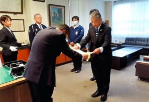 この賞は、日頃からの交通安全に対する意識と、適切な運行管理、そして交通事故防止への取り組みが評価されたものです。 水島警察署にて行われた表彰式では、賞状を授与いただきました。